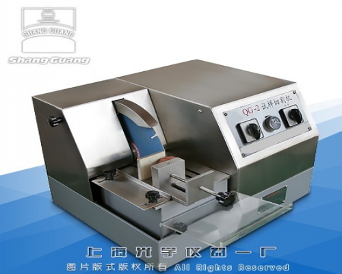 在金相試樣制備過程中,試樣材料的切割是試樣制備的首道重要工序。QG-2型巖相試樣切割機(jī)適用于一般巖相材料;該機(jī)的罩殼、砂輪軸套、鉗口和工作臺面等主要零部件均采用不銹鋼材料制成,經(jīng)久耐用;采用快速夾緊裝置,手動推進(jìn)切割,操作便捷;并配備循環(huán)冷卻水箱,切割后的試樣表面光亮、平整,無燒傷,是切割巖相試樣的理想設(shè)備。